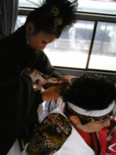 二人がかりではちまきしました!