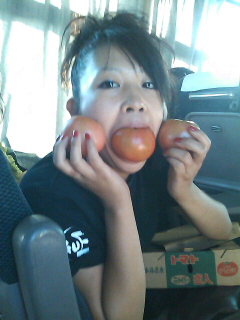 まぁちゃんが当てた平取牛!さきちゃんが勝ち取りました☆トマトも。