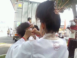 手前に見えている白いのは、うつり込んだうちのチームメンバーの衣装です!